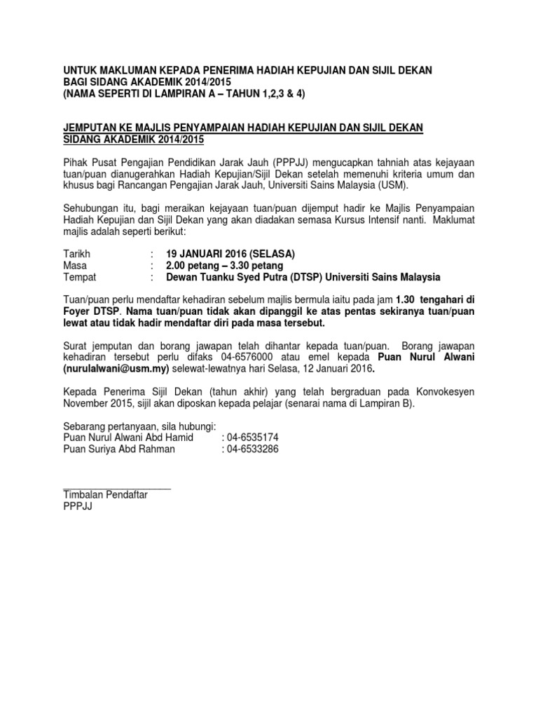 Untuk Makluman Penerima Hadiah Kepujian Dan Sijil Dekan