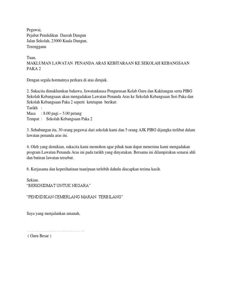 Contoh Surat Rasmi Lawatan Penanda Aras Gong Syimi