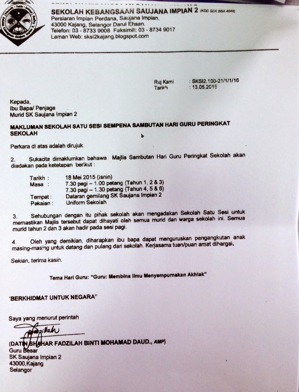 Contoh Surat Rasmi Makluman Kepada Ibu Bapa