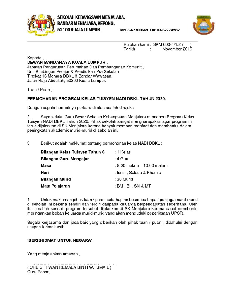 Surat Permohonan Nadi Dbkl 2020