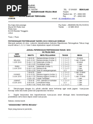 Surat Makluman Peperiksaan Kepada Ibu Bapa