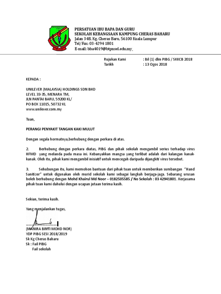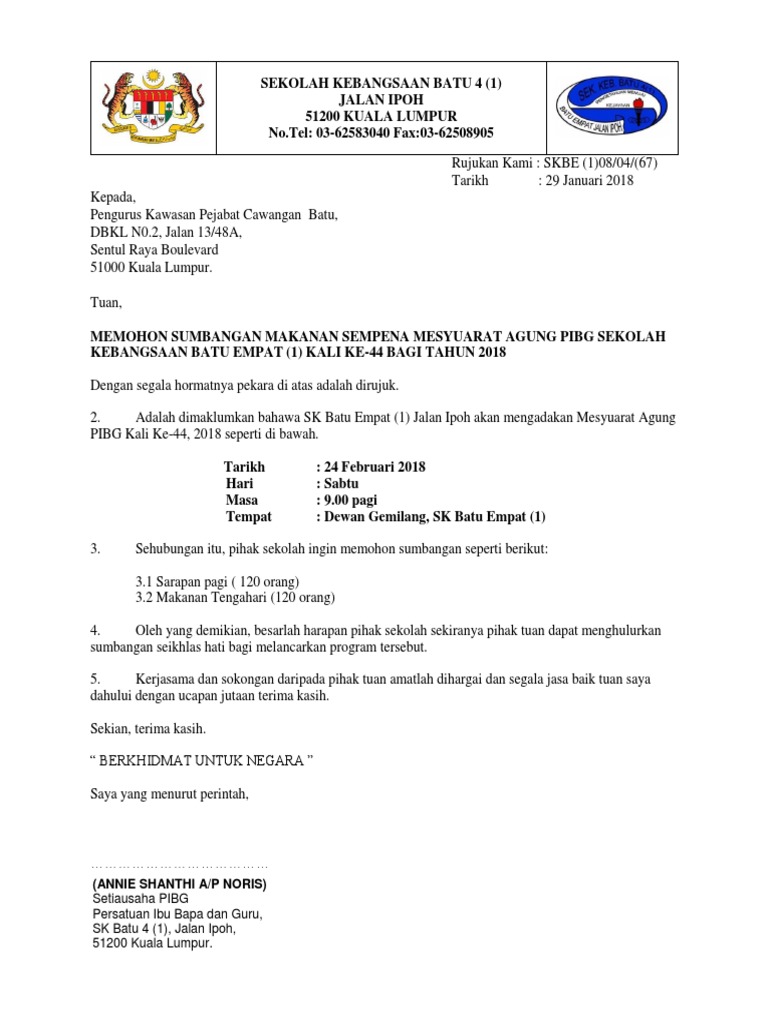 Contoh Surat Rasmi Memohon Sumbangan Yb Surat Rasmi B