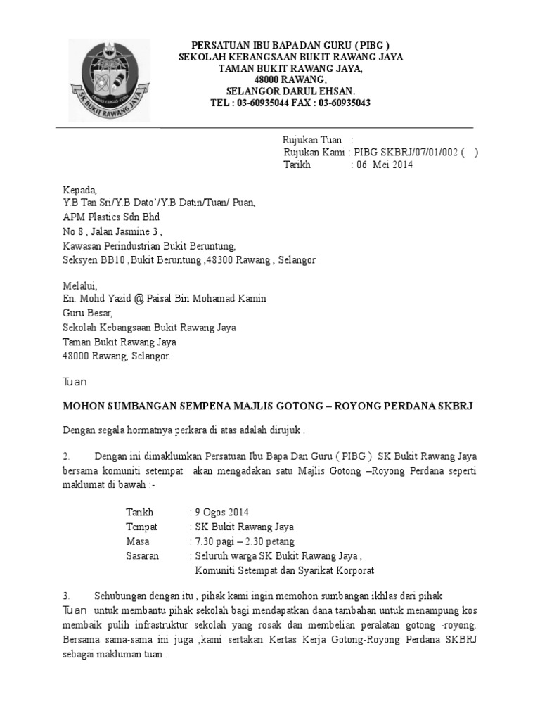 Contoh Surat Rasmi Memohon Sumbangan Wang Surat Rasmi 1