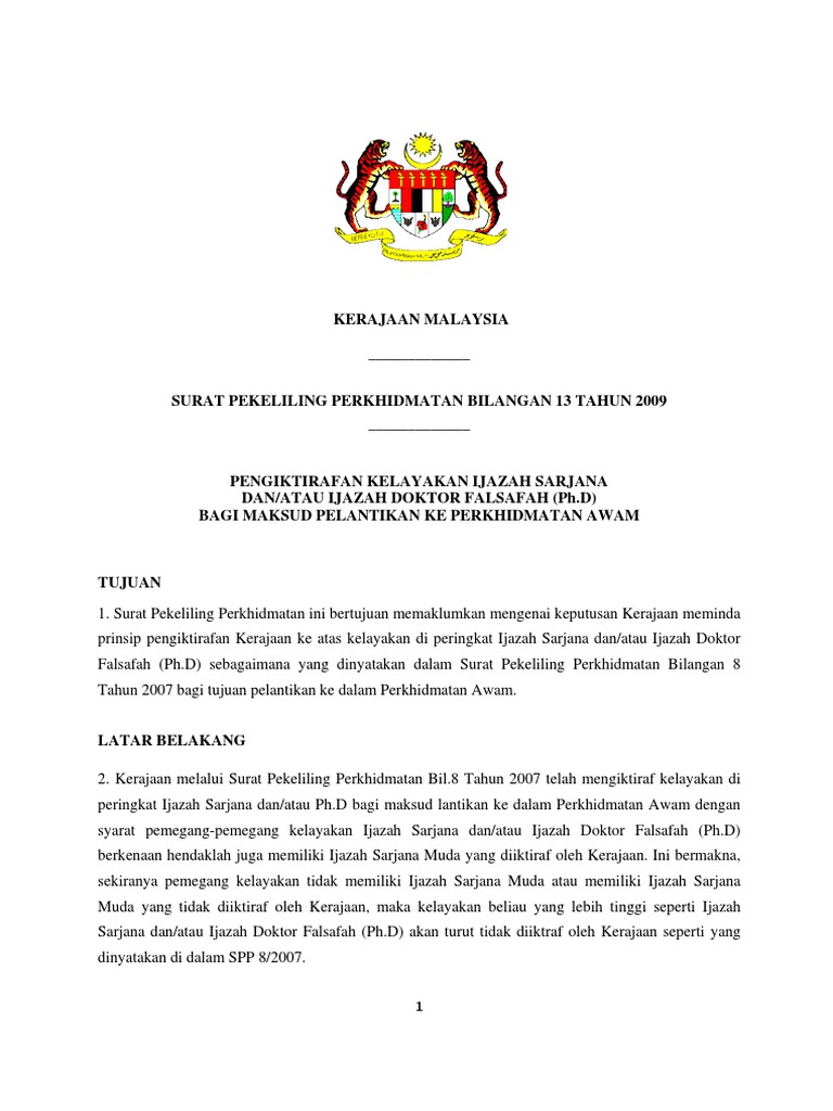 Surat Pekeliling Perkhidmatan Bilangan 13 Tahun 2009 Pdf