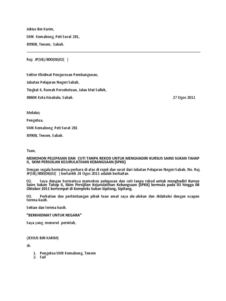 Contoh Surat Rasmi Memohon Cuti Tanpa Rekod Resepi Book P