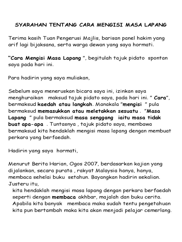 Doc Ucapan Pelajar Cemerlang Bayyinah Raflis Academia Edu