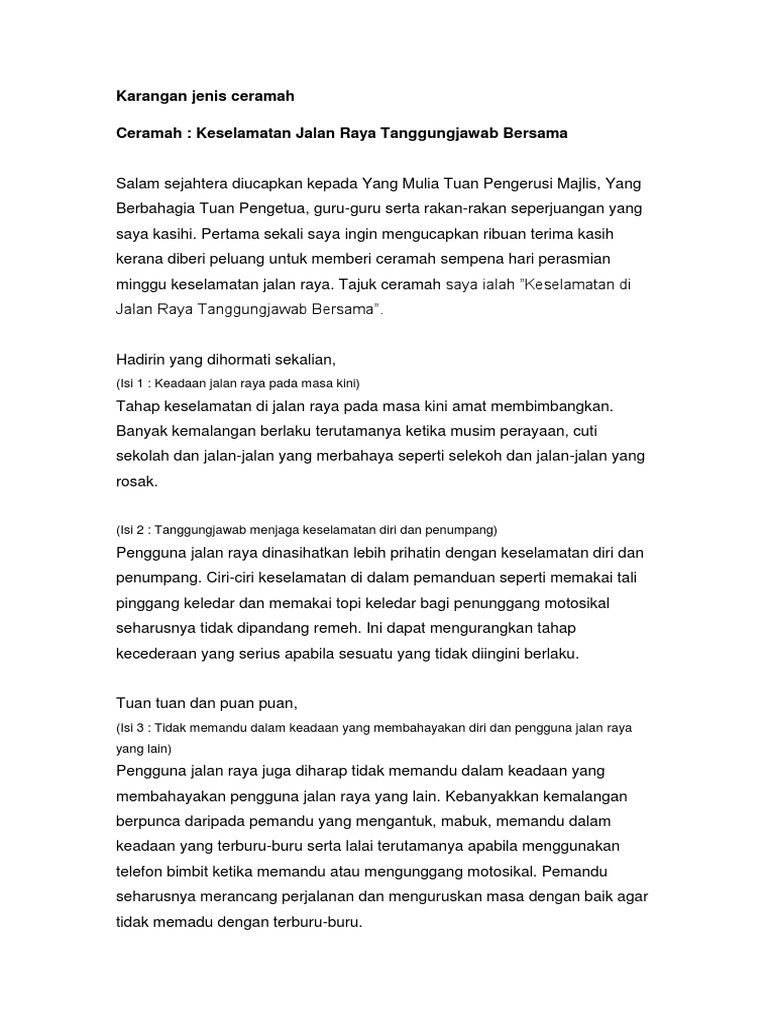Karangan Upsr Syarahan Cara Cara Menjaga Keselamatan Di Jalan Raya Duniaku Nasa2k