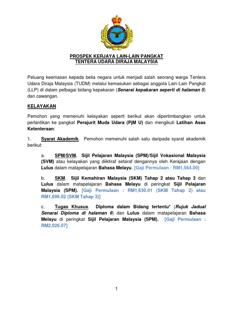 Syarat Permohonan Perajurit Muda Tentera Udara Tudm Syarat Mohon