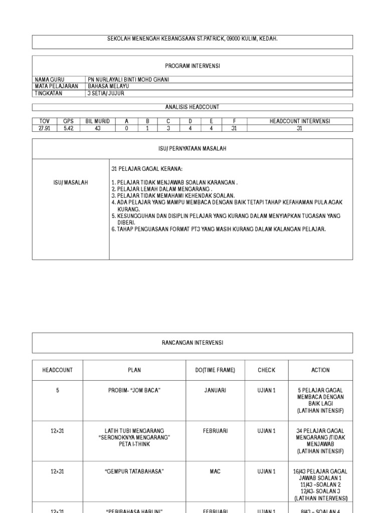 Pelan Intervensi Pt3 Bahasa Melayu