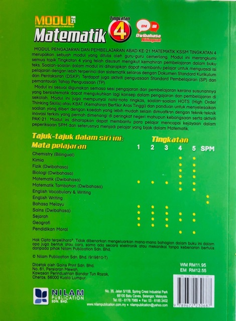 Nilam Publication Modul Pak 21 2020 Matematik Tingkatan 4 Shopee Malaysia