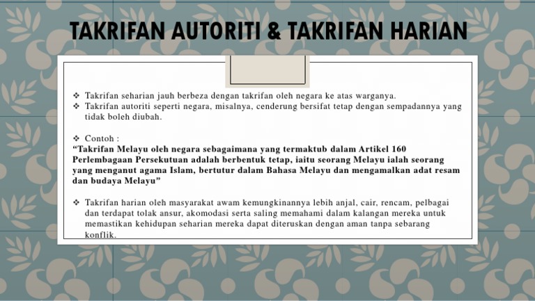 Takrifan autoriti dan takrifan harian. Zee music company recommended for you. Pengertian autoriti dari segi bahasa dan istilah eh seperti belajar pendidikan islam pula. 8060 hits perbezaan takrifkan harian dan takrifan autorititakrifan harian adalah realiti sosial yang dialami oleh orang ramai dalam kehidupan harian mereka takrifan autoriti adalah realiti sosial yang ditakrifkan oleh pihak yang menjadi struktur kuas. Melayu menganut agama islam bertutur dlm bahasa melayu dan mengamalkan adat resam dan budaya melayu harian takrifan masyarakat awam berbeza dalam kehidupan seharian.