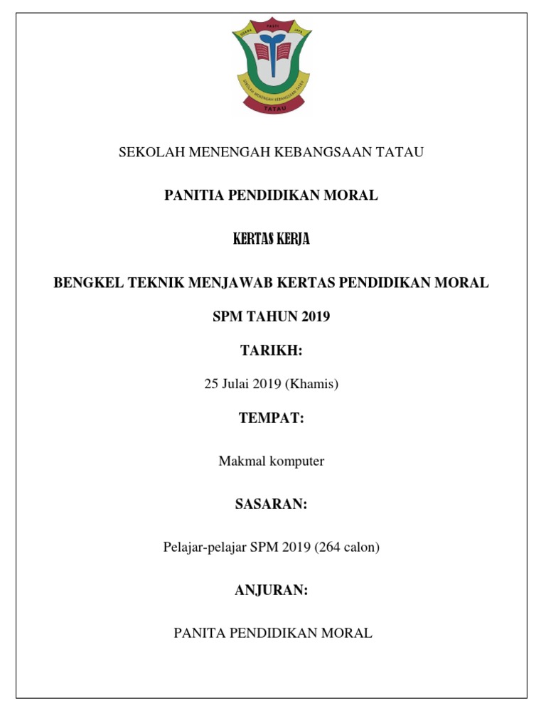 Kertas Kerja Bengkel Moral Spm 2019 Docx