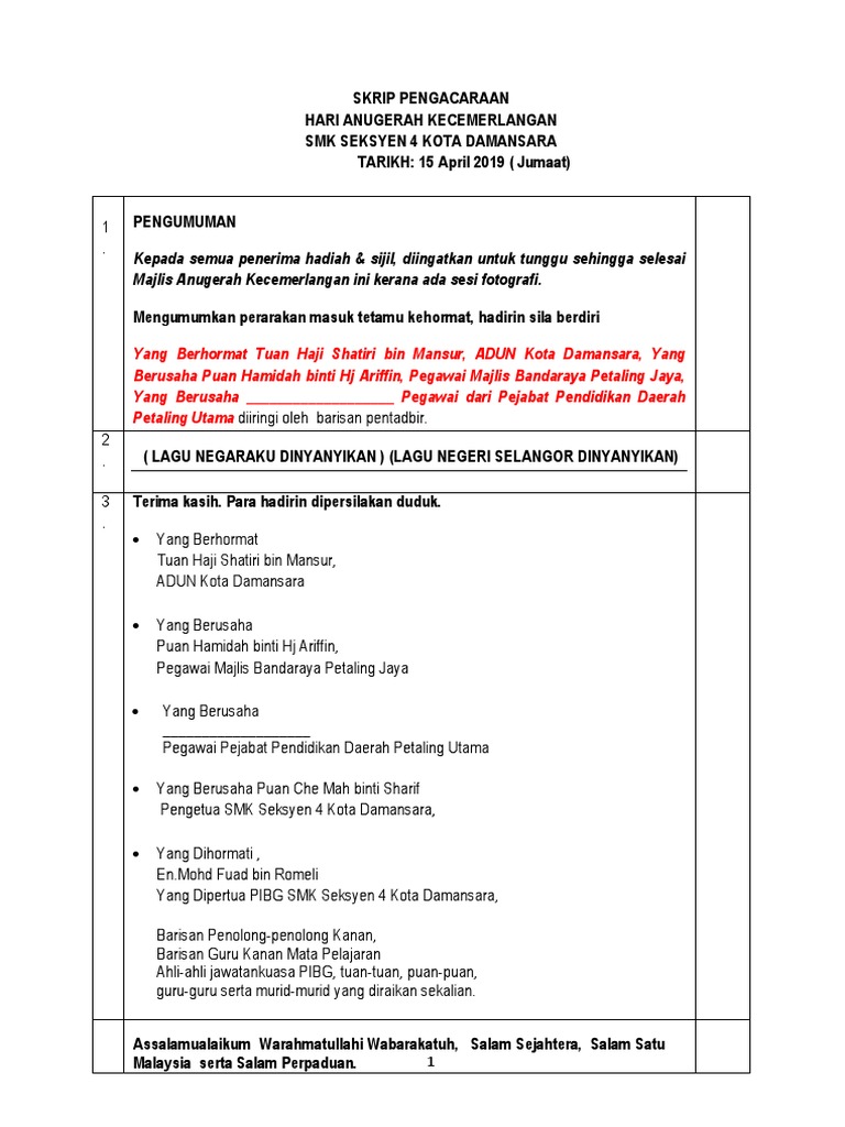 Teks Mc Majlis Anugerah Kecemerlangan 2018 Docx