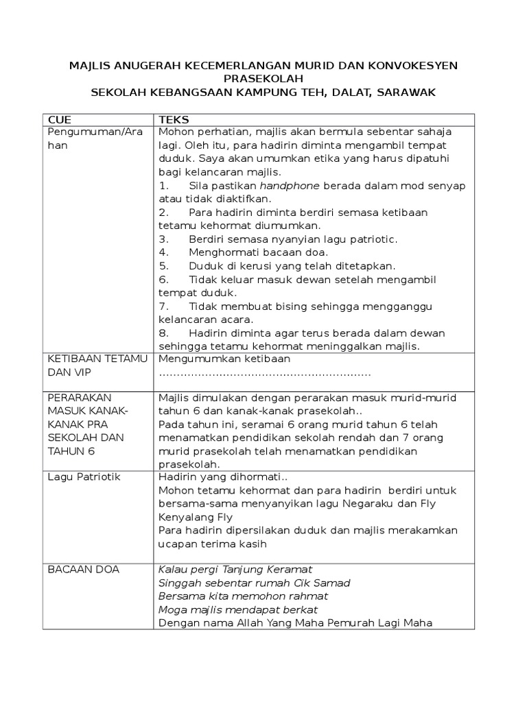Search Teks Mc Majlis Anugerah Kecemerlangan Murid Dan Konvokesyen Prasekolah Docx Slideus Org