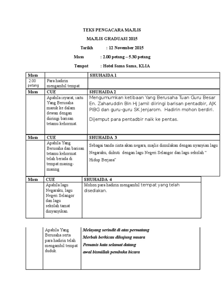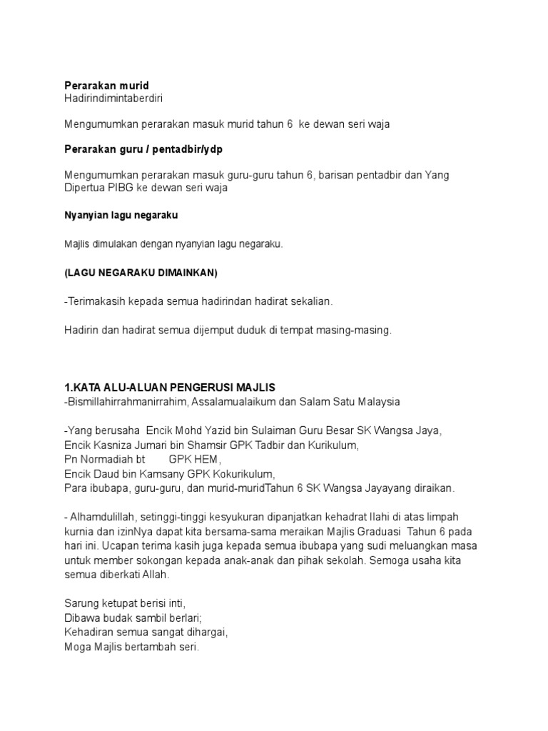 Teks Pengacara Majlis Hari Graduasi Tahun 6 Agenda Teks Ketibaan Perasmi