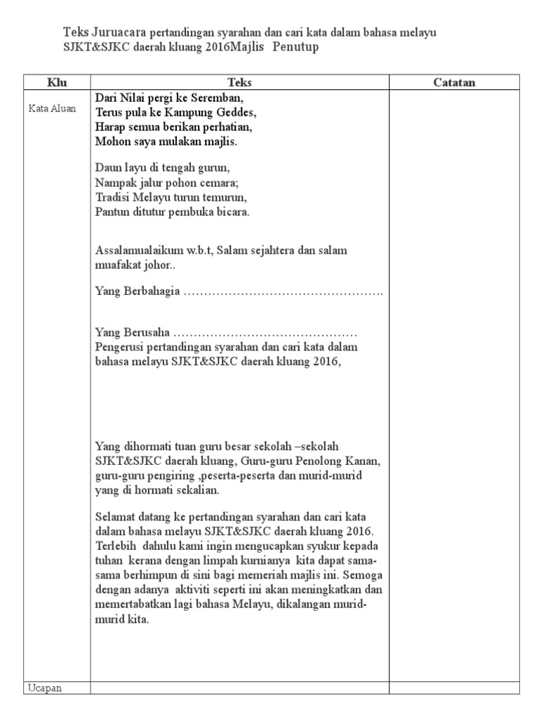 Teks Juruacara Pertandingan Syarahan Dan Cari Kata Dalam Bahasa Melayu Sjkt
