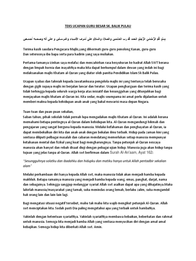 Teks Ucapan Gb Program Khatam Al Quran