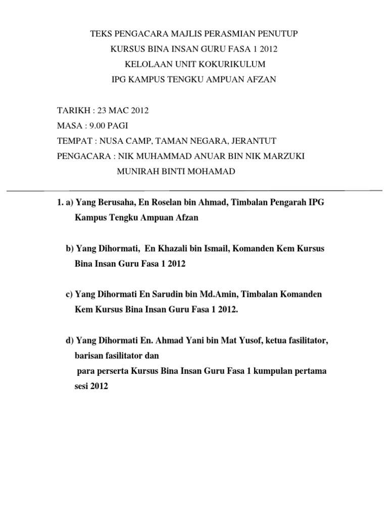 Teks Pengacara Majlis Penutup Kursus