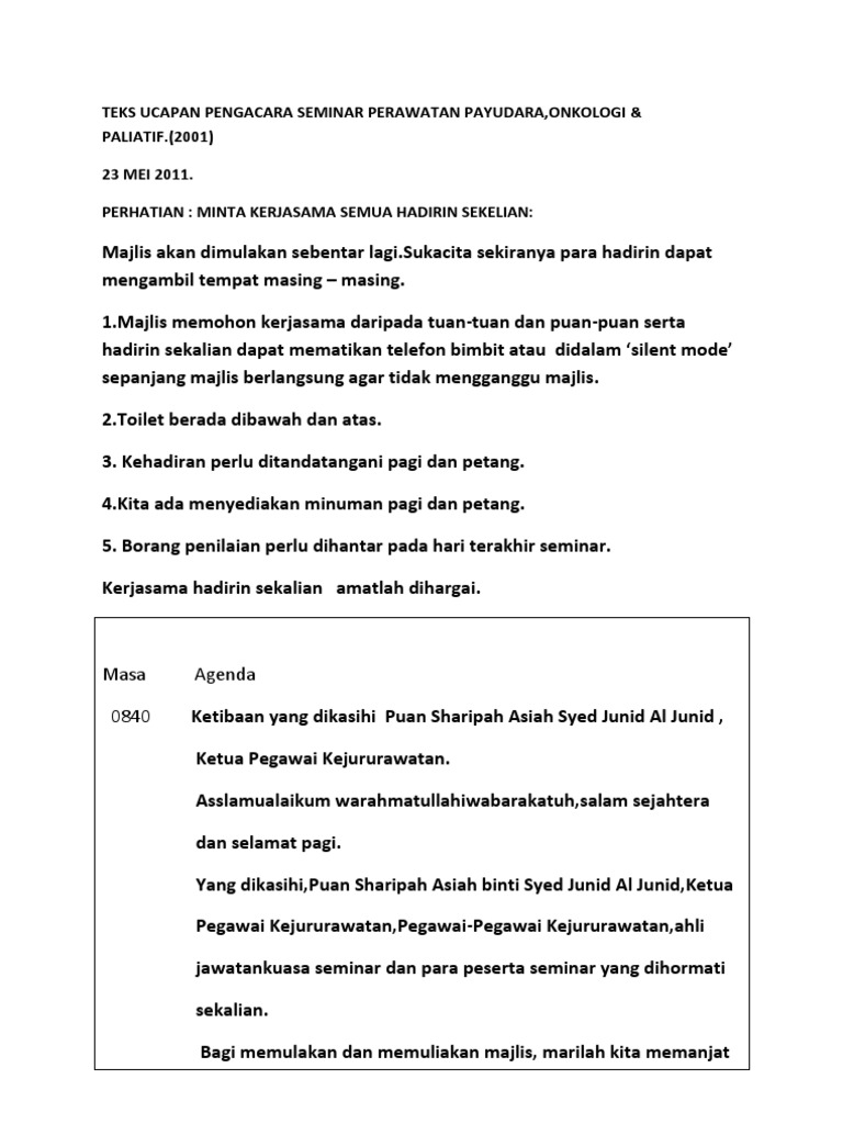 Teks Ucapan Pengacara Majlis Seminar