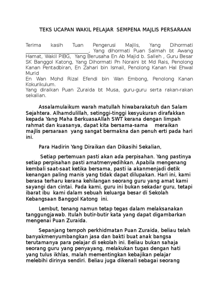 Doc Contoh Ucapan Wakil Murid Untuk Majlis Persaraan Sharina Sharina Academia Edu