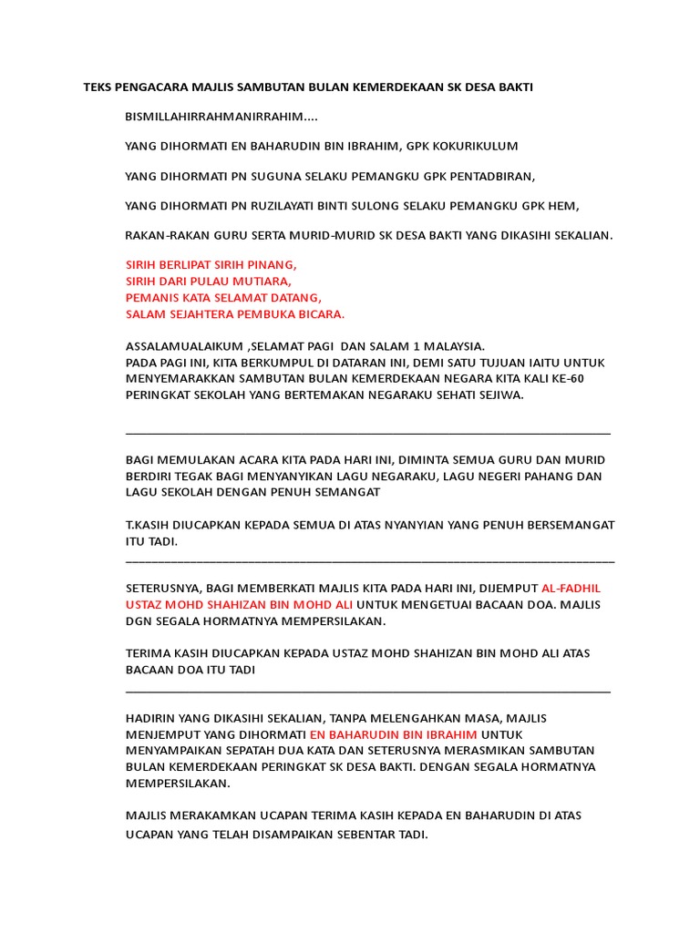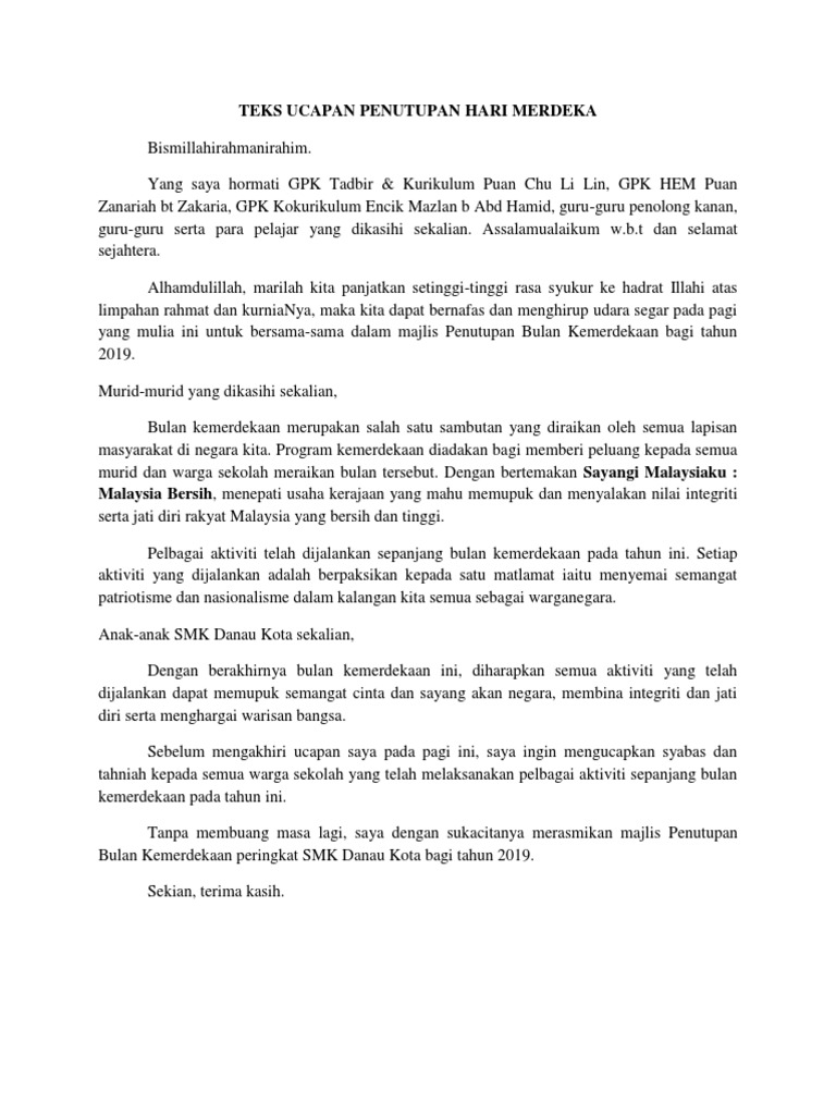 Karangan Sambutan Hari Kemerdekaan Di Sekolah Saya