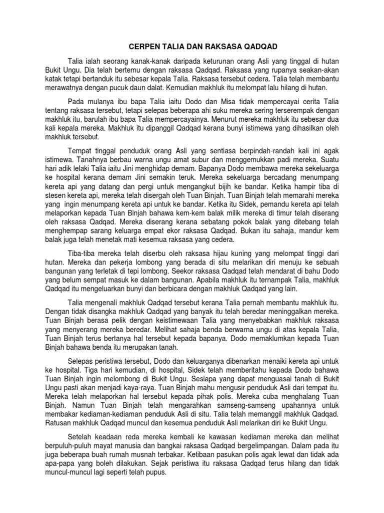 Cerpen Talia Dan Raksasa Qadqad Docx