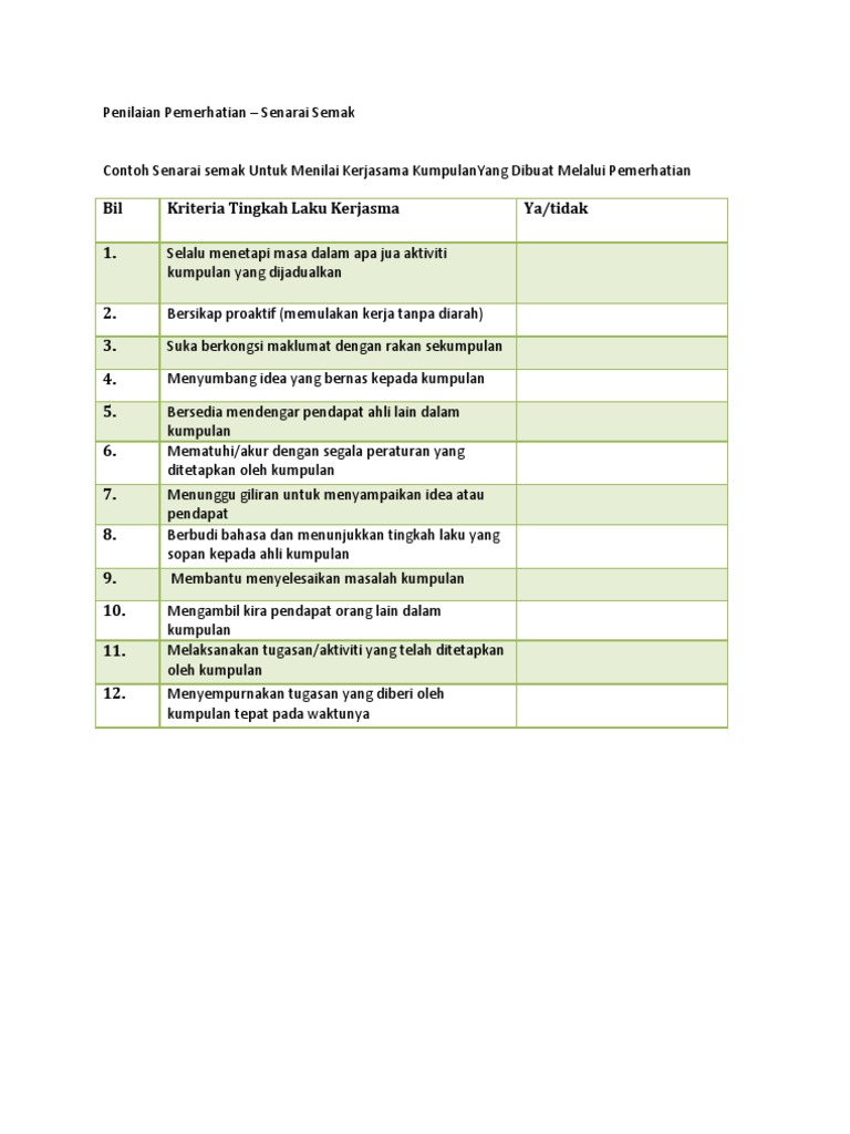 Amali 6 Penilaian Pemerhatian Senarai Semak