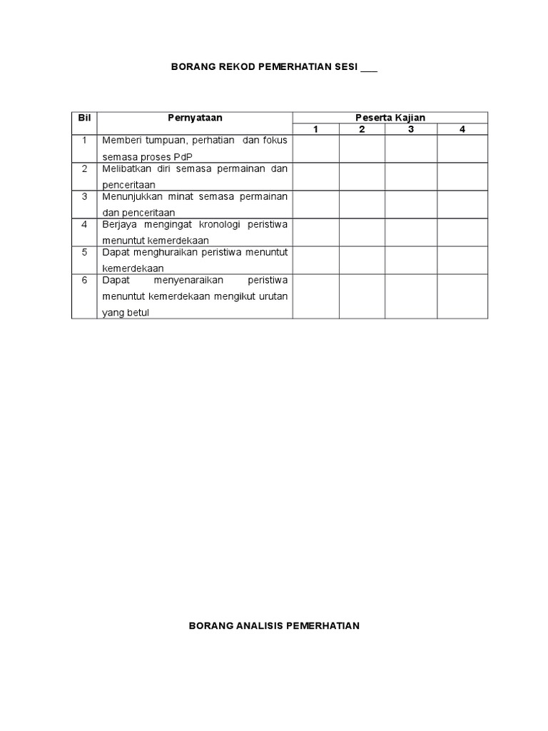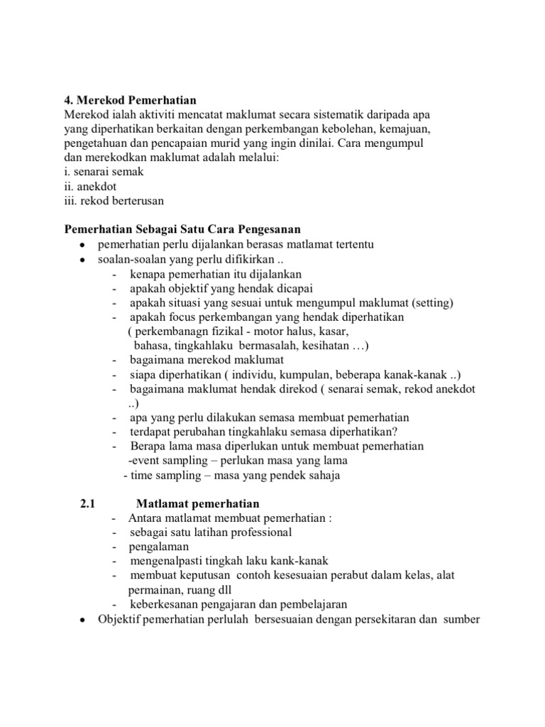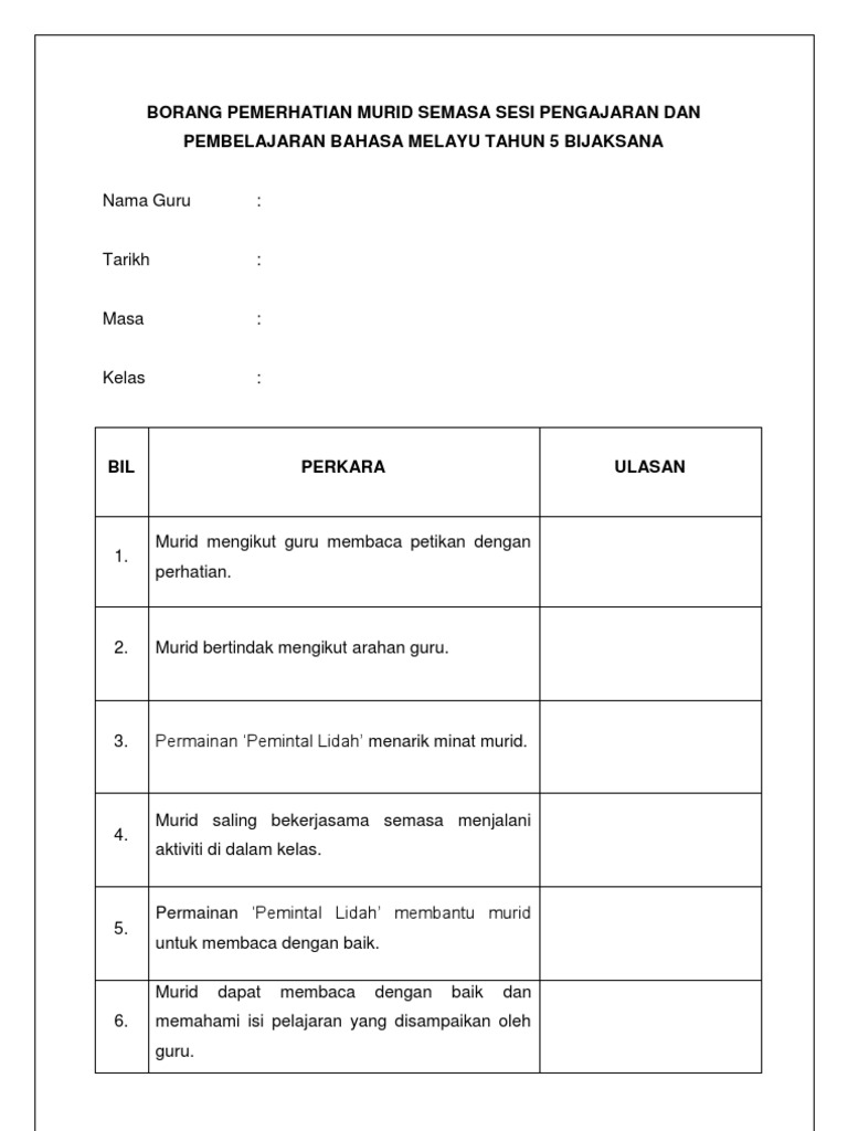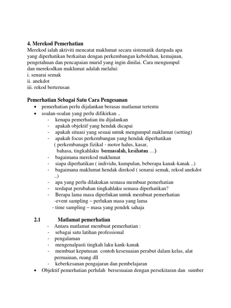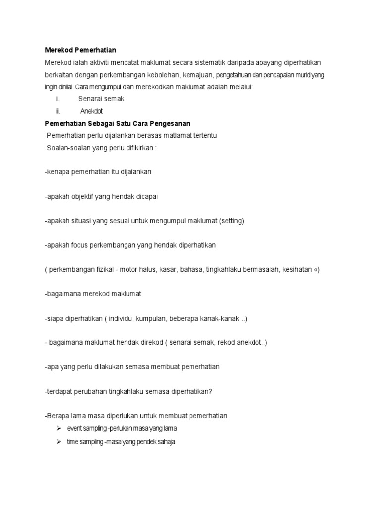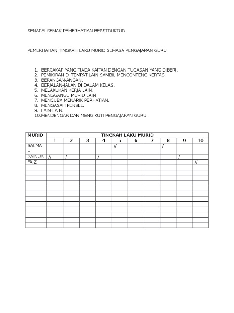 Contoh Senarai Semak Pemerhatian Prasekolah