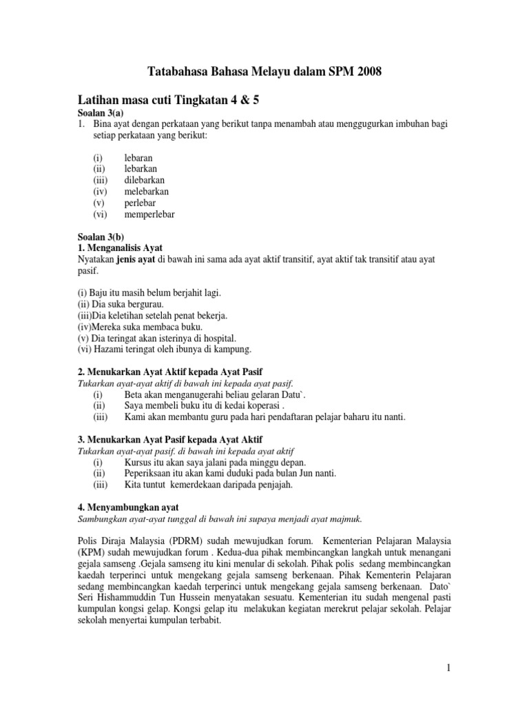 Kompilasi Soalan Spm 3b Jawapan Pdf Http Cikgusazali Blogspot Com Soalan 3 B Spm 2005 Kemahiran Sintaksis Tukar Ayat Pasif Di Bawah Kepada Ayat Aktif Course Hero