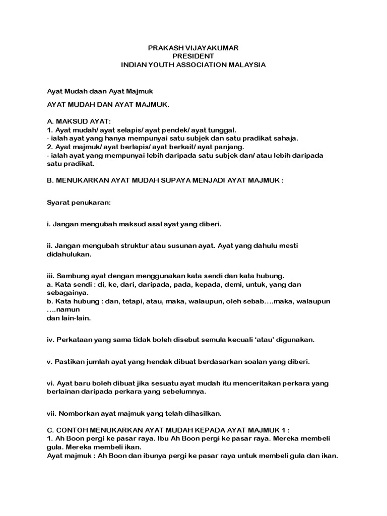 Ayat Mudah Dan Ayat Majmuk Pdf Document