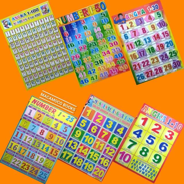 Paket Poster Edukasi Anak Urutan Hitungan Angka Bilangan 1 10 20 25 30 50 100 Romawi Shopee Indonesia